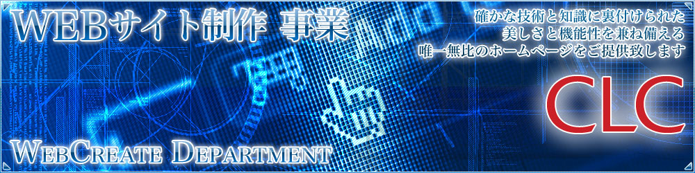 確かな技術と知識に裏付けられた美しさと機能性を兼ね備えた唯一無比のホームページをご提供致します。 どれほどカッコいいデザインのホームページも、作っただけでは何も起こりません。 大企業では不可能な軽いフットワークと細やかなサポートで、CLCではその全てをサポートします。 低コストで、かつ丁寧なページ作りを心掛けてますのでホームページ作成が初めての方も安心してご相談下さい。