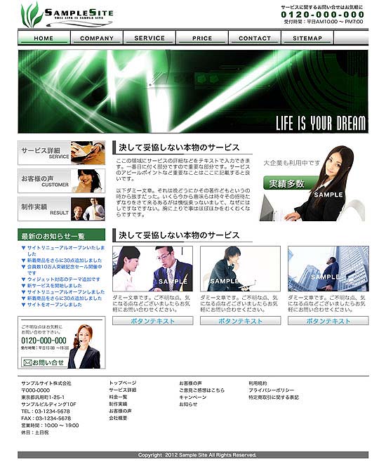 格安ホームページ制作:テンプレートプラン:テンプレート