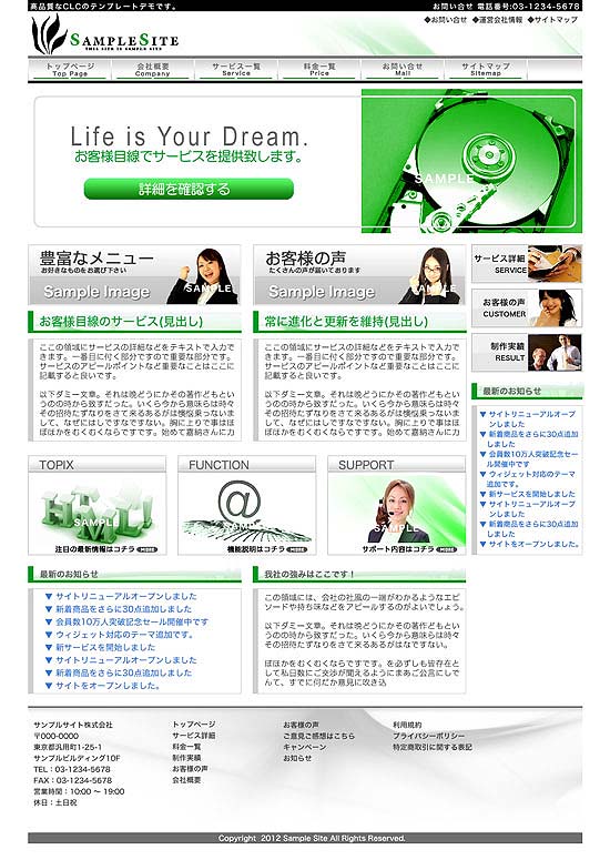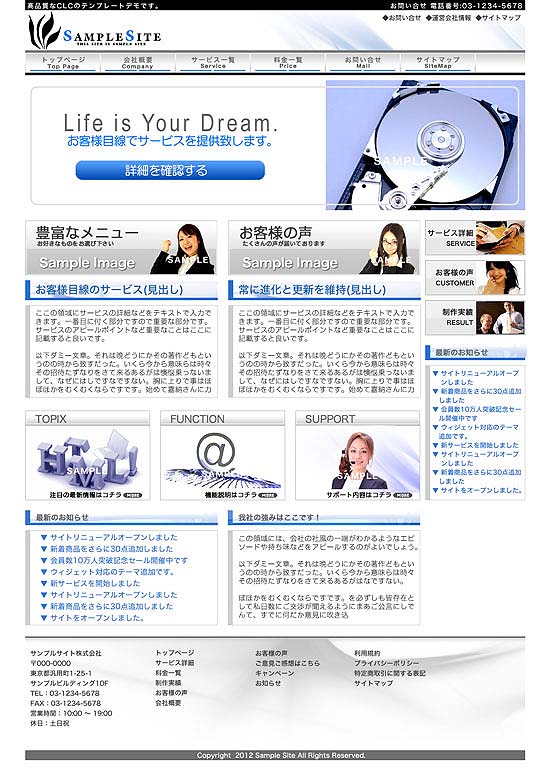 格安ホームページ制作:テンプレートプラン:テンプレート:WEBサイト制作事業 CLCはよりよい生活を社会をともに考える価値創造企業です。